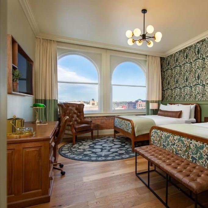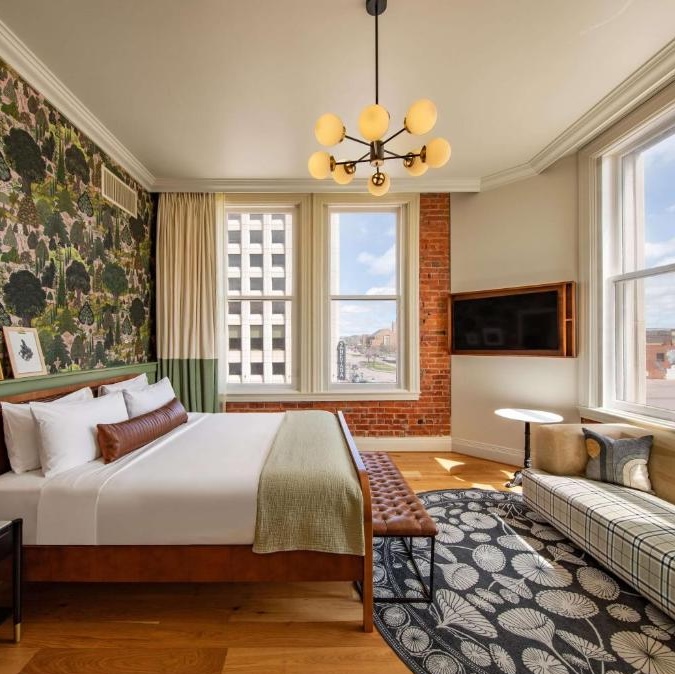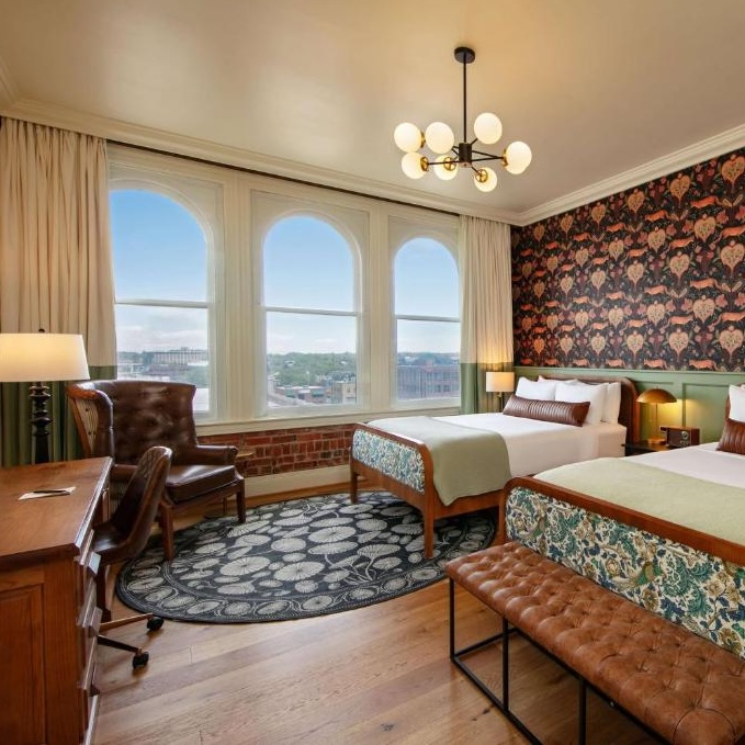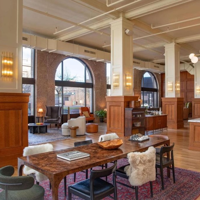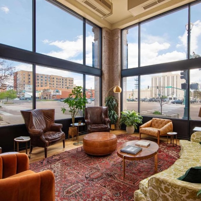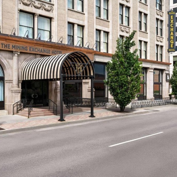 Originally the Colorado Springs Mining Stock Exchange, this hotel occupies four Italian Renaissance buildings with Art Deco flourishes. Authentic steel vaults remain on every floor, a relic from its financial heyday, alongside tin ceilings, brass railings, and brick walls. The lobby leans into Victorian grandeur with gold-toned furnishings that acknowledge the city's mining past, an antique Franz Wirth piano, and a marble fireplace. Rooms vary in layout but share granite desktops, high ceilings, and stone showers with dual heads. It is now managed by Wyndham, though the property retains its historic character.