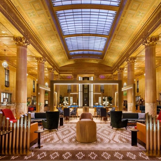 The National occupies the first eight floors of the 32-story First National Center, a 1931 Art Deco bank building that once ranked as Oklahoma's tallest. The restoration preserved original teller booths, vault doors, painted ceilings, and stone columns throughout its 146 rooms. The Great Hall bar operates in the former banking hall, drawing business travelers and locals conducting deals over cocktails. Tellers restaurant serves regional Italian cooking among restored teller booths, with house-made pastas and wood-grilled steaks. Rooms reiterate the building's Art Deco origins with high headboards and period details. No spa or pool, just architectural pedigree.