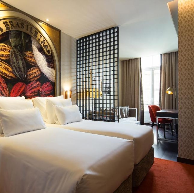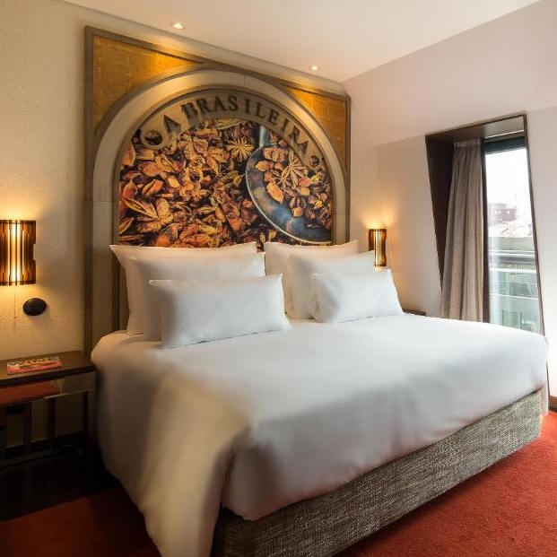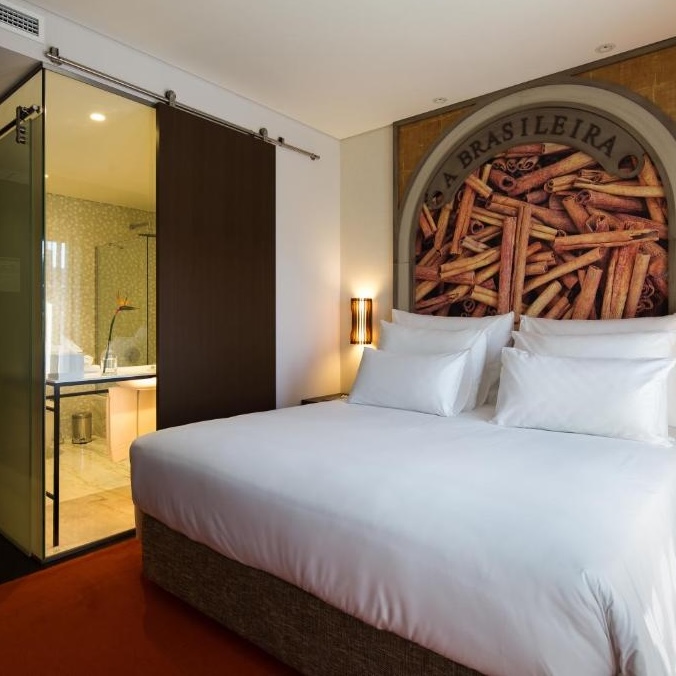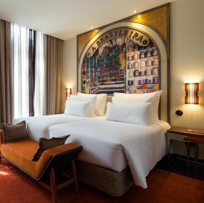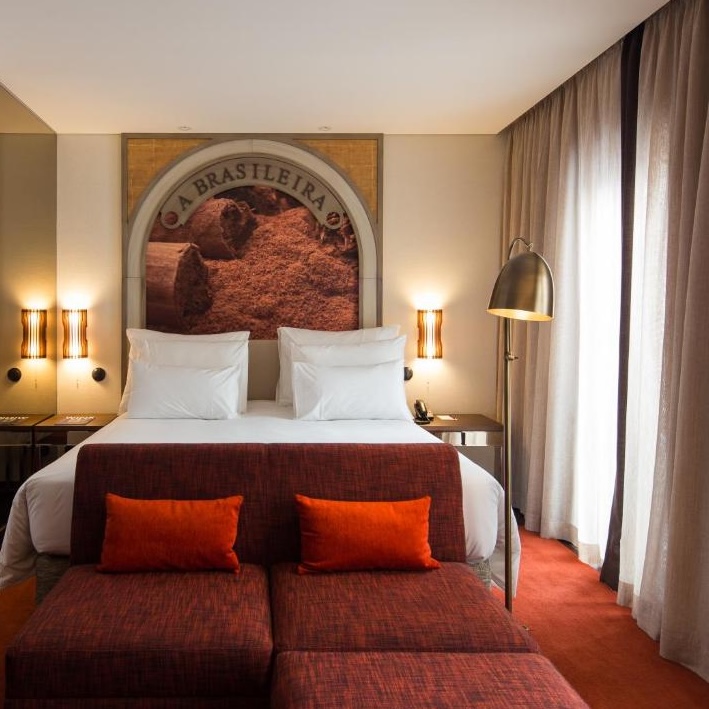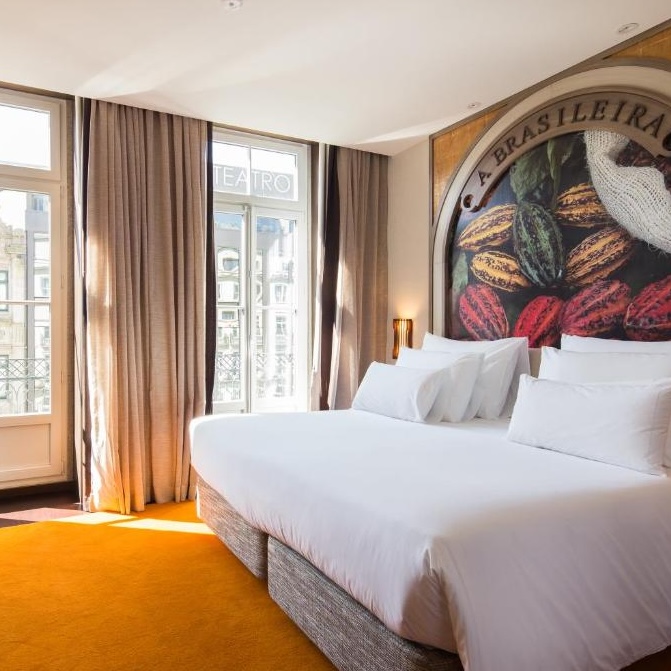 Perhaps the most charming hotel in Porto, the Pestana Porto A Brasileira is housed in what was once the Cafetaria Portuense A Brasileira, which was the first café in Porto to serve coffee in a cup when it opened back in 1903. It still serves coffee in its new role as the hotel’s all-day dining cafe, now called Historical Café, A Brasileira, which thankfully has retained its early 20th century splendor including ornate columns, decorative moldings and arched windows. Elsewhere the hotel has had a more modern makeover, although the shades of burnt orange, burgundy and brushed gold that feature in the contemporary rooms nod to the historic rich wood and gilded décor in the cafeteria downstairs. There’s also a restaurant, A Brasileira, which serves a modern twist on Portuguese cuisine. Other facilities include a gym, and the hotel can also organize cultural experiences such as guided city tours, river cruises, and visits to nearby wineries.