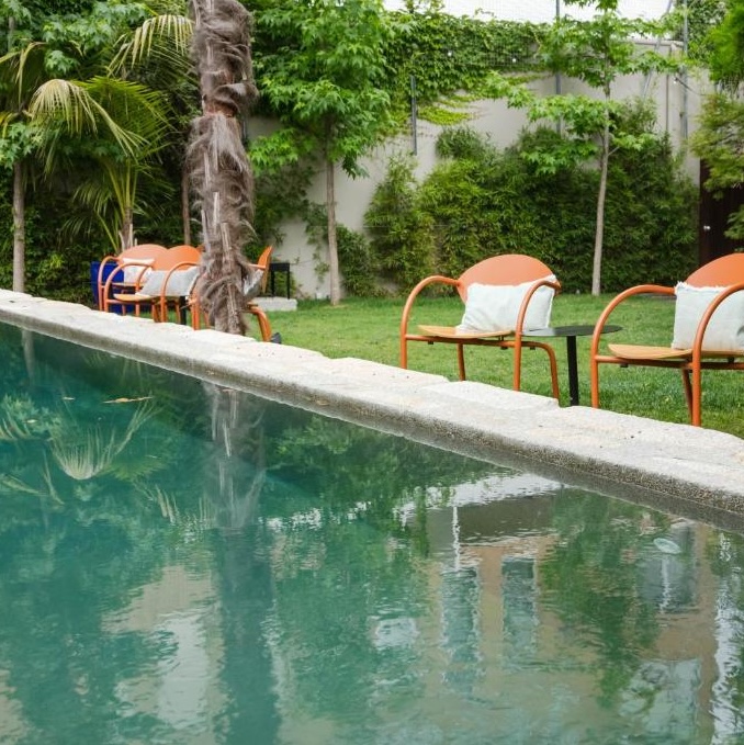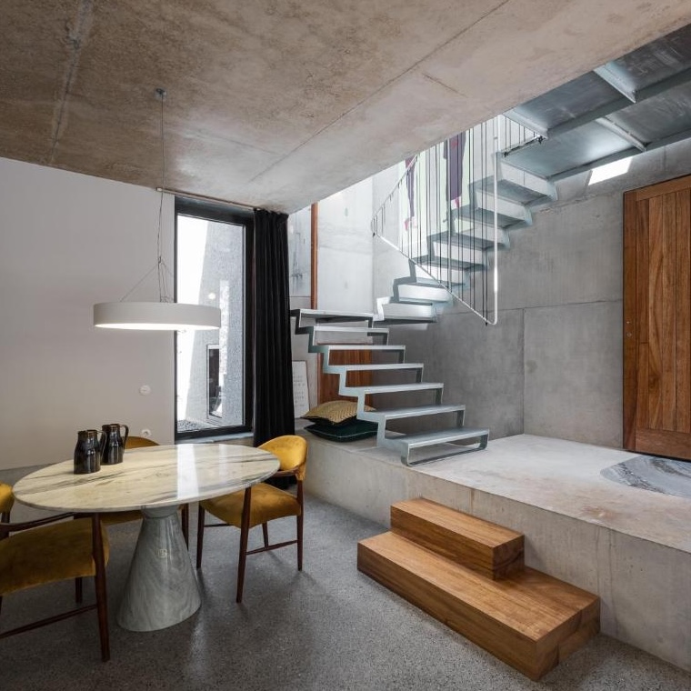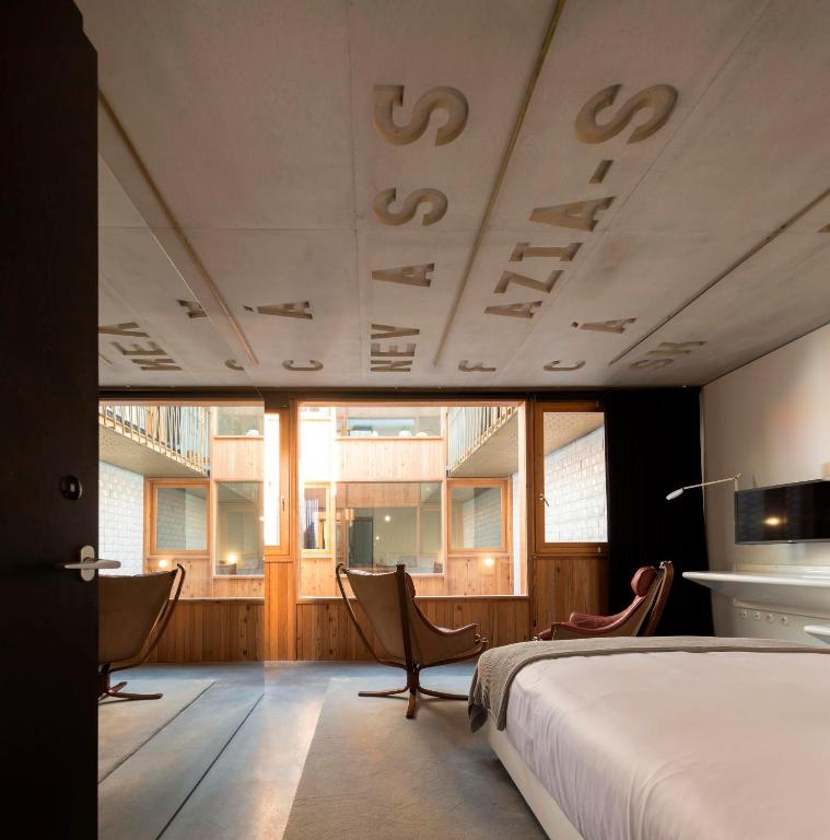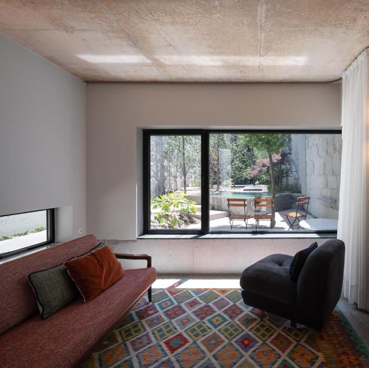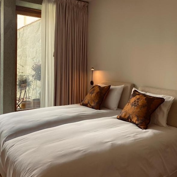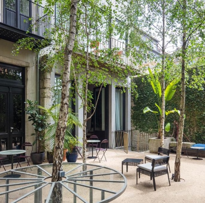 Like its sister hotel Casa do Conto, Tipografia do Conto puts a contemporary riff on a historic Porto property. Once an industrial space for activities such as typography and graphic arts, the building has now entered a new chapter as a ten key hotel, but still retains its original details such as the stone façade. In the guest rooms, raw concrete ceilings have been inscribed with texts from various Portuguese and international authors in the fields of architecture, art and design, while wood paneling and rich leather vintage furnishings bring a warmth to the pared back white walls. Facilities include a garden, central courtyard, outdoor pool, and bar Hífen, which also hosts a rotating program of exhibitions, concerts and cultural events.