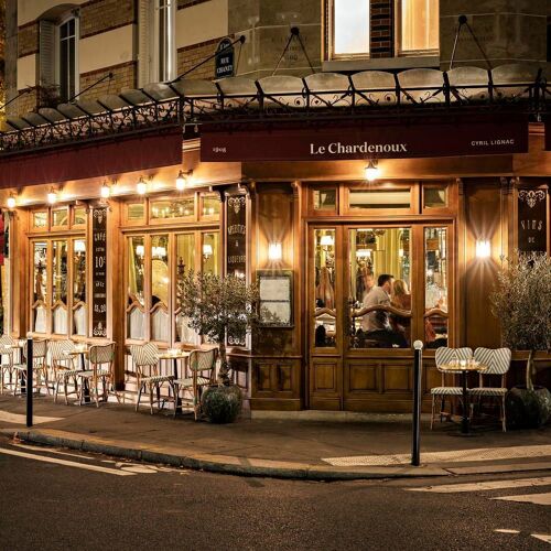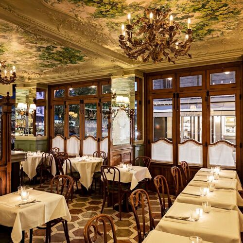 Dans ce bistrot parisien fondé par la famille Chardenoux et inscrit au titre des Monuments historiques, le regard oscille entre le magnifique plafond peint et le décor Art nouveau avant de revenir à l’essentiel, une assiette délicieusement iodée. Car, ici, c’est la mer qui s’invite à table. Les incontournables signés Lignac sont présents : lobster roll, bar en croûte de sel, tartare de thon, avocat, ponzu, wasabi, sans oublier l'excellent millefeuille ou le baba au rhum ! Une jolie mention pour la très bonne galette craquante, tourteau au curry et avocat dont les saveurs sont justes, savoureuses et équilibrées.