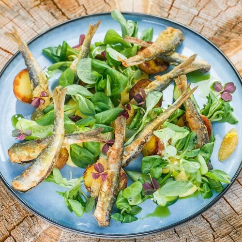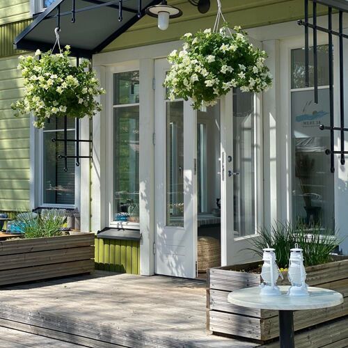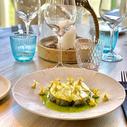 Set in a quiet village, this green-painted wooden house boasts both a fashionable New England style restaurant and smart apartments. It has a cosy dining room with fleece-covered chairs, as well as a lovely summer terrace. Dishes are largely Mediterranean influenced and are vibrant and full of flavour.