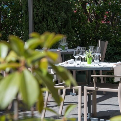 Sous la houlette expérimentée du chef Jacques Bovier, on déguste ici une jolie cuisine de terroir franco-méditerranéenne ponctuée de touches créatives, d'épices et d'herbes aromatiques : plusieurs risottos, mais aussi une tartelette aux tomates, glace au sérac ; bar rôti, câpres, croquants de fenouils anisés ; émiettée de cuisse de canard d'Appenzell confite à la sarriette ; vacherin glacé aux fruits rouges… De bons produits, du métier, et un jardin-terrasse paysager plus qu’agréable.