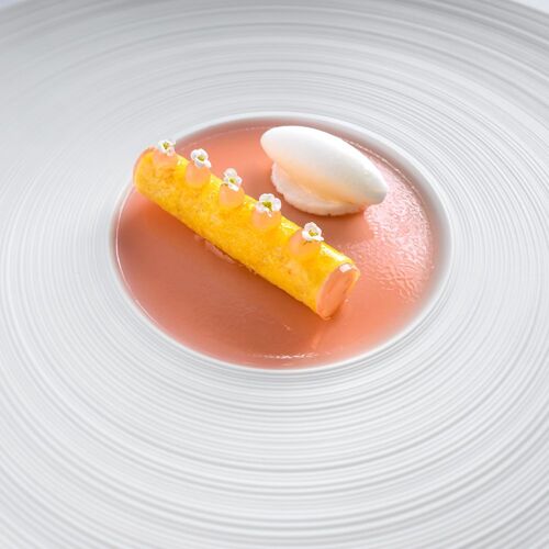 The full-length windows in the striking slate and glass extension of this Lakeland country house provide spectacular views of Lake Windermere and the surrounding countryside. This local area provides much of the produce on the tasting menu, with some coming from the hotel's own greenhouse and gardens. The skill of the chefs is evident in their technical mastery and fine balancing of flavours; well-seasoned monkfish ballotine is a prime example, expertly cooked sous vide and accompanied by a beautifully subtle carrot and saffron sauce.