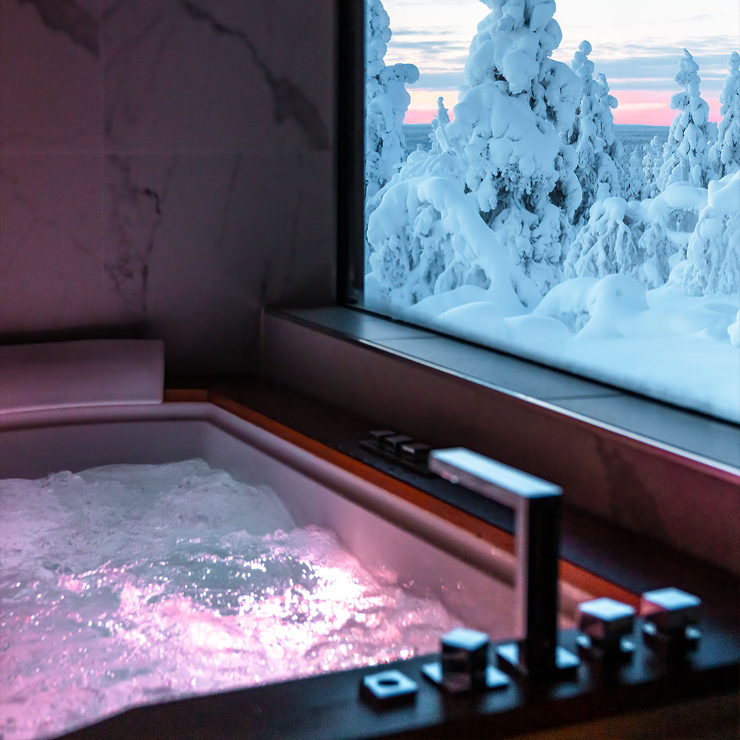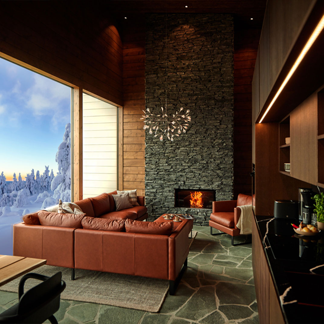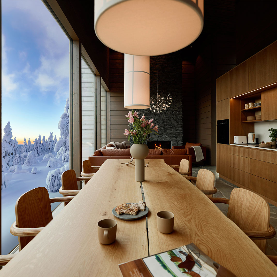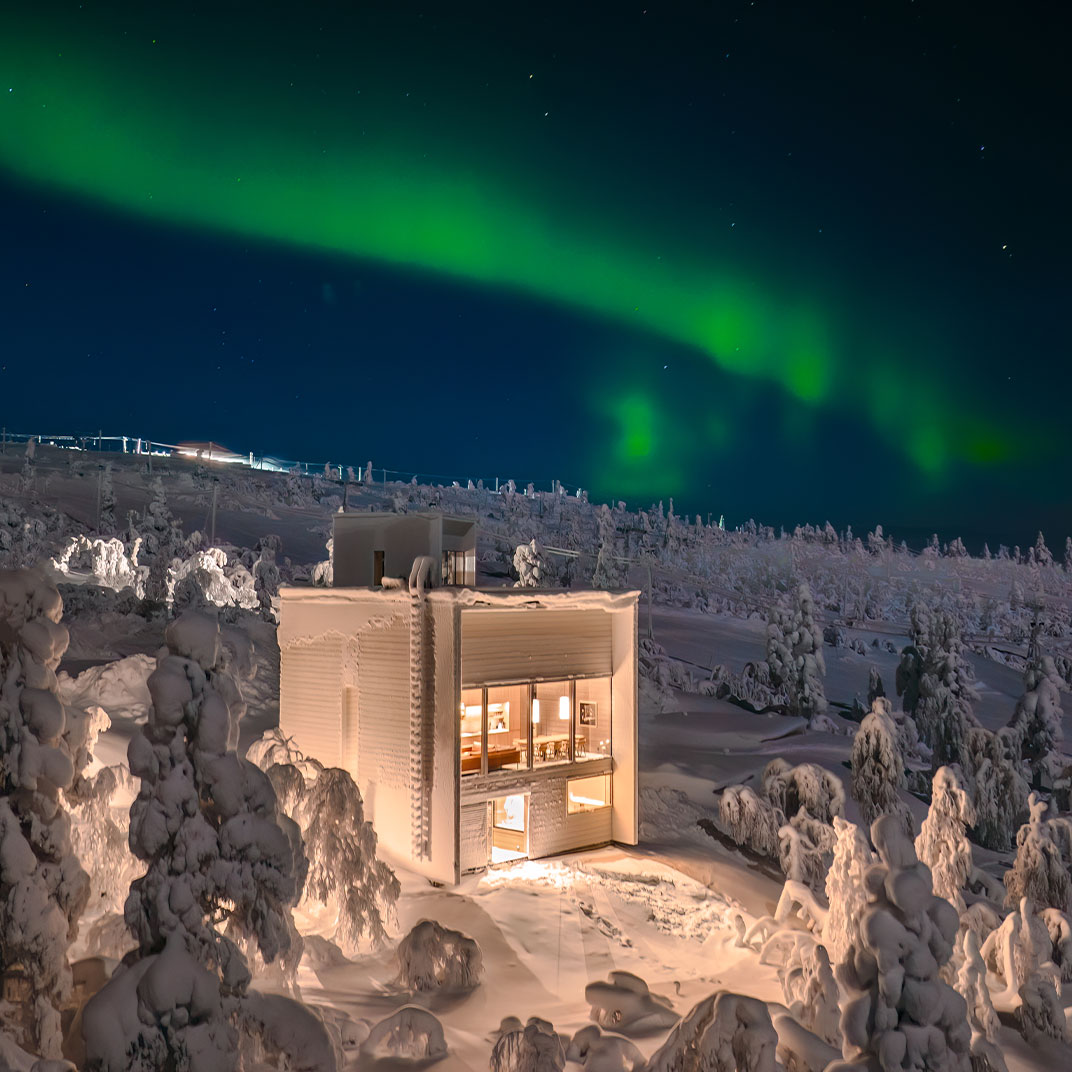 There can’t be many hotels of any description much further north than VALO Ice Cube Villas, and certainly none more stylish. Here, in Finnish Lapland, 150 miles north of the Arctic Circle, stand four modern, cube-shaped villas, each one framing an impressive view of the landscape through panoramic windows. The interior style is Nordic modern-luxe, warmed by textures of wood, stone, and fur.