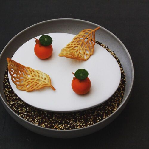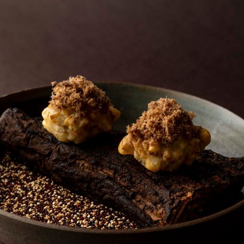 Masaaki Fujita reaches deep into the character and history of Japan and Italy to conjure his cuisine. Eel, Chinese yam and red rice on a single plate fuse the gustatory senses of the two countries, both rooted deeply in cultures of river fish and rice. Zest of Japanese pepper married with the bittersweet of red wine sauce is somehow nostalgic. Fujita’s motto is ‘to be master of one is to be master of all’. His long study of hometown cooking followed by his own innovations proves the point.