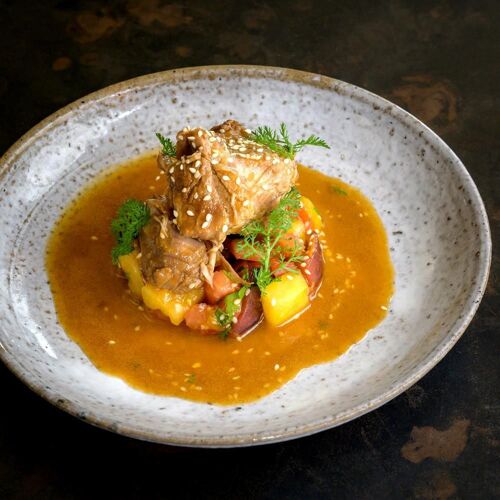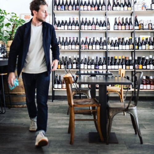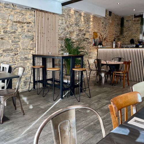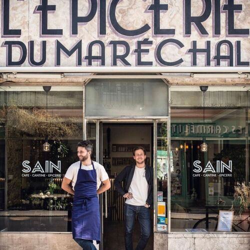 This restaurant is a café, canteen and grocery shop all in one, combining a relaxed atmosphere with a philosophy of serving food that respects produce and the planet: a stall for organic vegetables from the family farm in Guérande, a shelf of natural wines (to take away) and laid-back service provided by Samuel Huitric. His brother Josselin cooks tasty market cuisine that is on point without too much fuss: œuf parfait, cream of courgette, mint, pistachio, ham crisps; pork polpette, tomato, cumin, puréed potato.