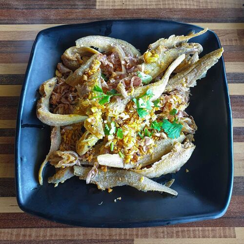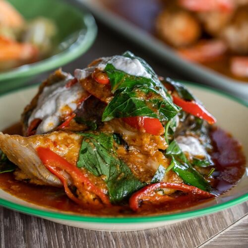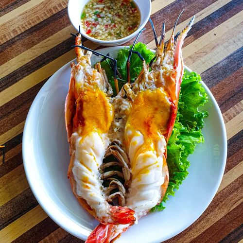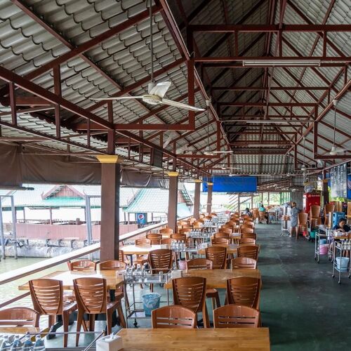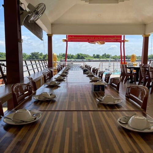 This riverside restaurant is a great place to stop for lunch after paying respects at Wat Choeng Len. Diners gather here for some of the finest fresh produce from the river, including grilled prawns and deep-fried sheatfish. The aromatic green curry with clown featherback fish balls is another highlight. Advance ordering of the huge river prawns – expertly cooked over charcoal – is highly recommended, as they are both popular and in limited supply.