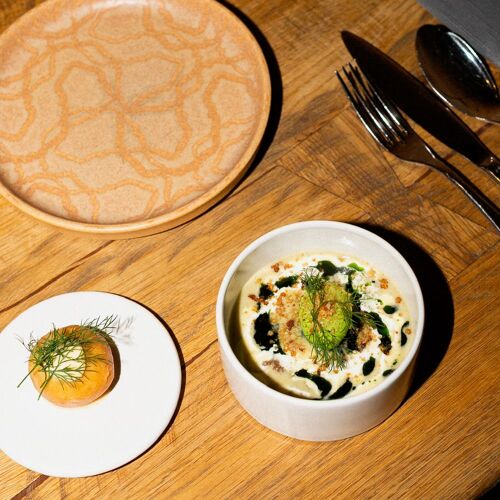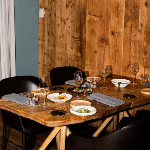 A little outside the city centre, surrounded by greenery, this restaurant is located right next to its sister establishment, U Matěje. There are just a handful of tables in the modern yet rustic dining space, all with a direct view of the open kitchen. Here, the young team of chefs creates an ambitious 5- or 10-course suprise menu. Attentive service comes courtesy of charming waitstaff. Tip for motorists: You can park in front of the building – using a parking app is recommended.