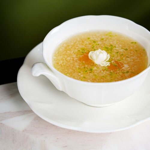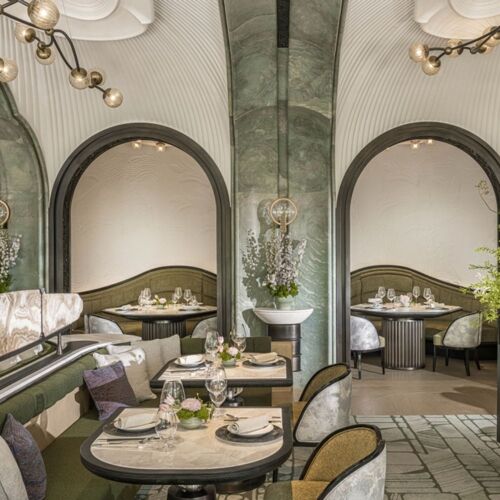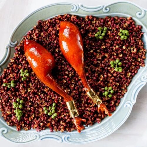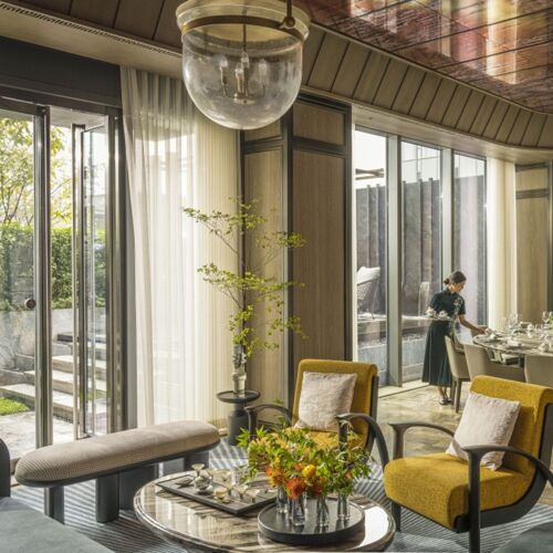 Jade-coloured archways, silk-clad panels and organic light fixtures evoke a classical Hangzhou garden with a stylised touch. Similarly, the seasoned fine dining kitchen team adds novel twists to Ningbo classics. Marinated raw crab in a spicy sour sauce boasts briny sweetness, gelatinous texture and buttery roe. Crispy skin pigeon leg is deboned and stuffed with the bird’s breast; Sichuan pepper cuts through the richness.
