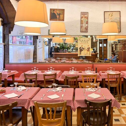 A sincere and authentic bouchon replete with checked tablecloths, closely packed tables and a buzzy vibe. The colourful young chef, Luc, frequently pops out to chat with guests, when he’s not conjuring up textbook recipes with consummate flair, such as pistachio sausage in brioche pastry or tablier de sapeur (offal)… 100% patriotic line-up.