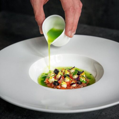 A real must for lovers of Italian food! Federico Campolattano serves up delicious dishes that are scrupulously ingredient-led, pleasingly pared down, and rife with beautifully balanced contrasting flavours. Diners have a choice between "Das moderne Menü": a set menu comprising five, six or nine courses – you might be tempted by the "Octopus and its Neapolitan History" or the cheese menu featuring five DOP Parmesans of varying ripeness. Alternatively, there is "Das traditionelle Menü": a three- or four-course set menu. The wine list is predominantly Italian. Housed in a historical building in a spruce residential area of Freiburg, this restaurant is sleek and rather unadorned, but no less cosy for it. There is also a delightful little terrace. Tip: You can buy jars of pasta sauce to cook at home.