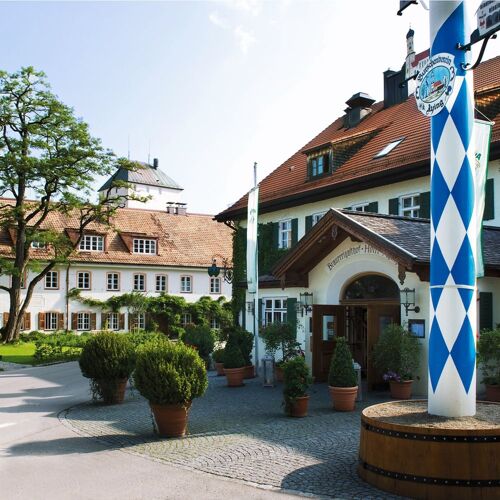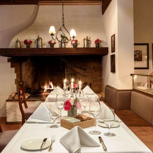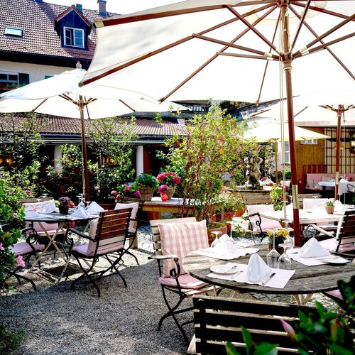 The restaurant is part of the picture-perfect Brauereigasthof Hotel Aying is a family-run establishment steeped in tradition and now run by the seventh generation. Diners are treated to warm hospitality in an upscale yet cosy setting. The terrace to the rear of the building is delightful in summer. The menu features exquisite regional and seasonal dishes, crafted from carefully selected produce of the highest quality – the restaurant has its own herd of Pinzgau beef cattle, as well as a hunter, who provides the game. In addition to the selection of fine wines, there are of course Ayinger beer specialities. Good event facilities. Comfortable and tastefully decorated guestrooms available for overnight stays.