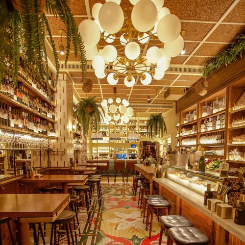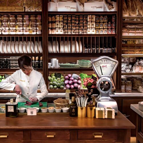 A unique restaurant that has recreated the ambience of a traditional grocery store, where you can enjoy delicate tapas, Iberian hams, salted dishes, high-quality tinned products and even seafood, many of which are packaged ready to take away.