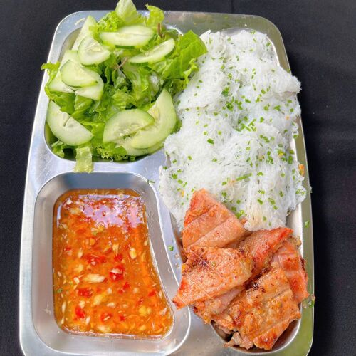 Dripping in lush greenery, this simple shop feels like an indoor garden. Its signature dish is a crispy bánh xèo pancake filled with beef, squid or shrimp, alongside herbs and veggies, wrapped in rice paper and dipped in a peanut sauce. Another speciality from Da Nang is bánh tráng thịt heo – rice paper roll filled with sliced pork belly, ribbon rice noodles and fresh herbs. But its umami-loaded fermented anchovy sauce is what delivers the oomph!