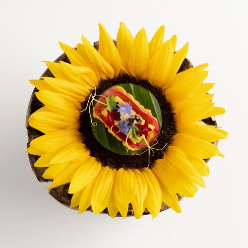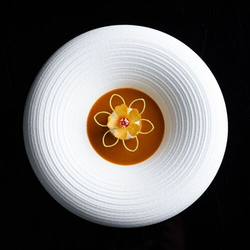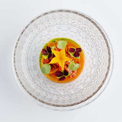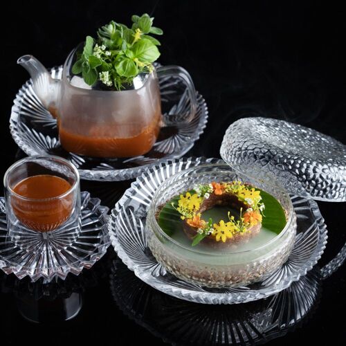 Each of the 18 exquisite and strikingly presented vegetarian dishes on the ‘Rasas’ menu are constructed with the same supreme care and ability, and they all add up to an experience you won’t forget. There’s a story behind each creation, which the delightful team take time to explain – and it’s extraordinary to think there’s no garlic or onion used. The restaurant, located in Dubai Hills Business Park, is uniquely decorated and painted in a very special light green. The tables face a large, wide altar-like table where chefs are seen adding the finishing touches to each dish.