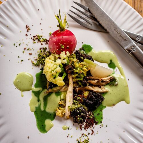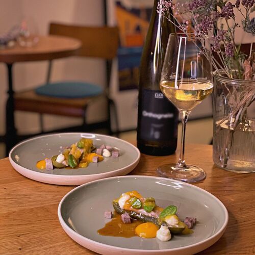 Once the sommelier at Petit Amour on Spritzenplatz, Mathias Mercier has now realised his dream and opened his own restaurant just a short distance away. In a relaxed setting, diners are offered a small à la carte selection; if they wish, they can create a small set menu comprising three to six courses from the individual dishes. Alternatively, they can opt for the nine-course tasting menu – the value for money is excellent. The cuisine clearly draws on the chef-patron's southern French roots, featuring delicacies such as fougasse with a superb anchoïade (anchovy sauce) and pralines infused with lavender or pastis. A standout dish is the sea bass with peach, verbena and navy beans. The wine list includes some rare gems at reasonable prices. Friendly and attentive service.