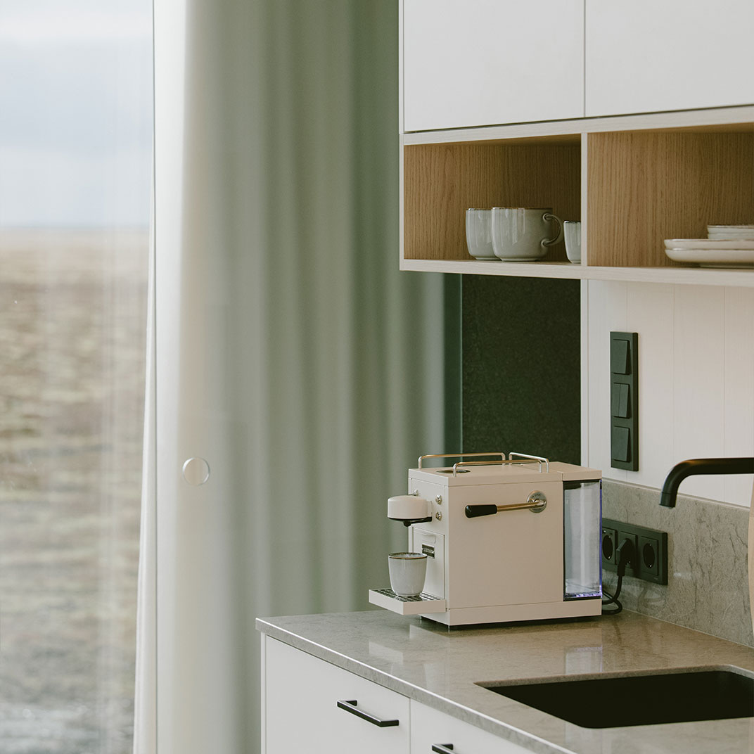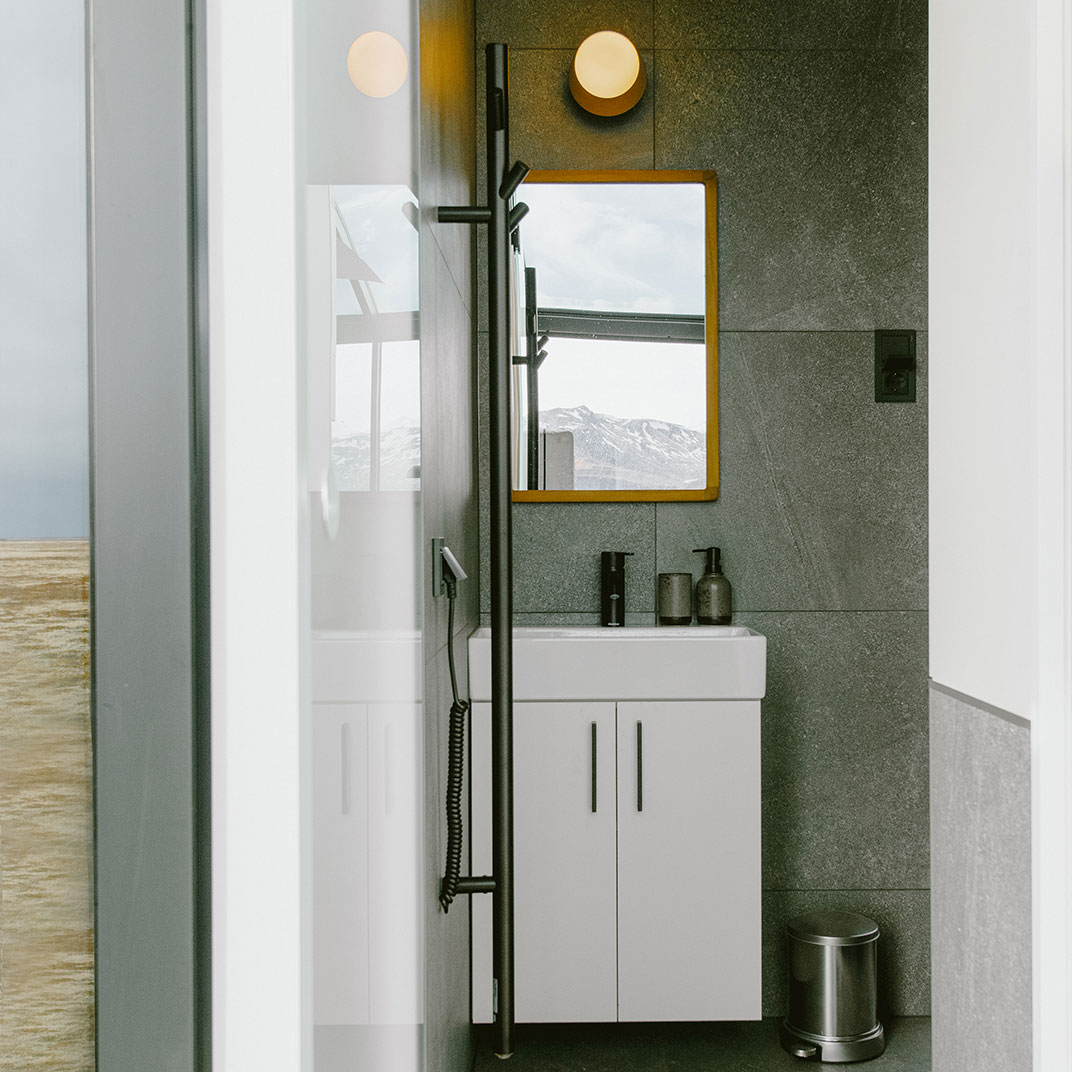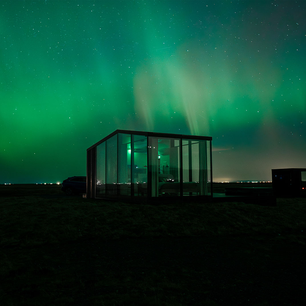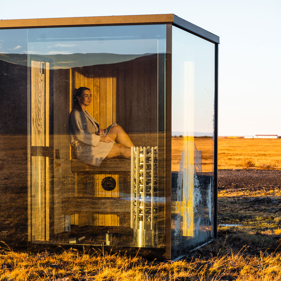 Each one also comes with a private sauna and hot tub in a separate glassed-in outbuilding, so you never have to leave the view behind. What they don’t have is any kind of common space — no lobby, no reception, and certainly no restaurant. Anyone who’s made it this far is mobile, presumably, and their days will be spent exploring the South Coast of Iceland; you’ll bring what you need to supply your cottage’s kitchenette.