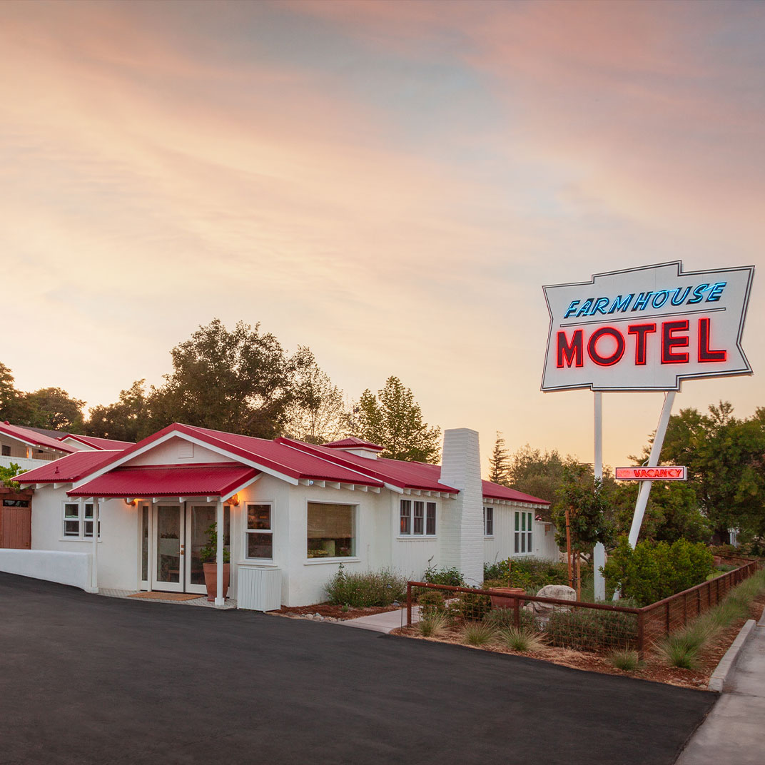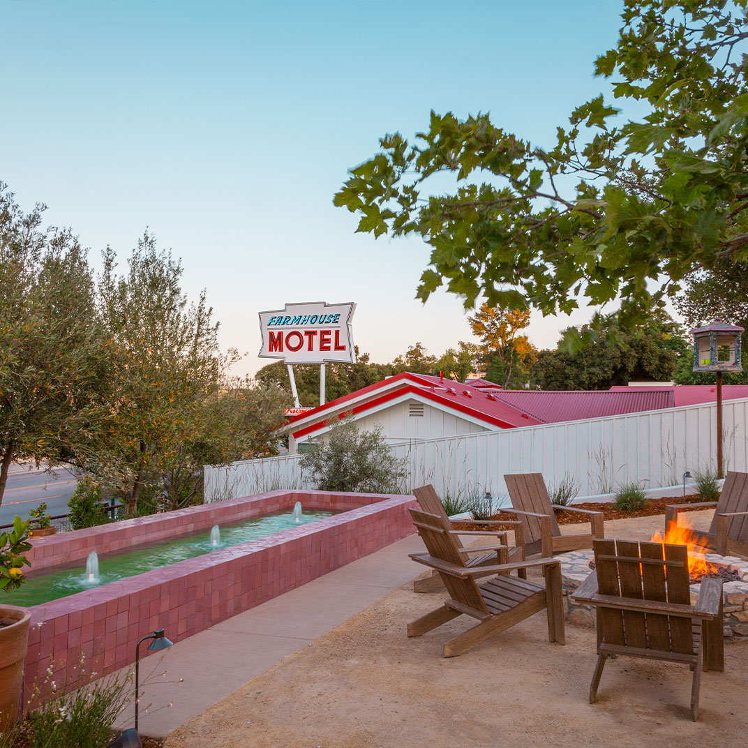 There’s no law that says a boutique adaptation of a 1950s motor lodge has to go in for mid-century modernist nostalgia. The motel that’s now Farmhouse Paso Robles was designed in a country-cottage style, which is an excellent match for what draws most of the region’s 21st-century visitors: the region’s booming trade in wine production.