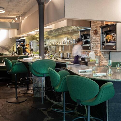 Bruno Verjus's approach is to select the finest ingredients and cook them with humility and the utmost respect. This remarkable character was previously an entrepreneur, blogger and food critic. Behind the counter (where diners are seated on comfortable bar stools), he waxes lyrical about his suppliers and the desire to take a back seat to the artisans who produce what he then cooks – on that note, when it comes to either the recipes or the ingredients, the chef considers himself to be a "middle man". Everything is made to order, with garnishes and sauces designed with just one thing in mind: to elevate produce without distorting it. Let yourself be transported by the wide-ranging set menu (poetically named "Colour of the Day") and devised daily according to available ingredients: Utah Beach natural oysters, calf brain and sea anemone fritters, lobster from the Île d'Yeu, red mullet grilled skin on, "poularde gauloise rôtie en patience"... The premium ingredients are exceptional. Online booking only.