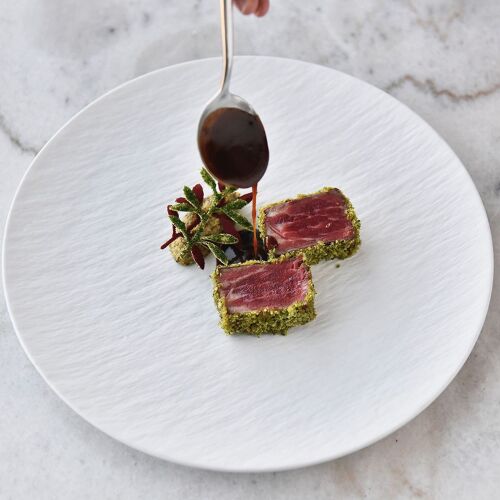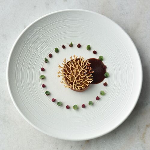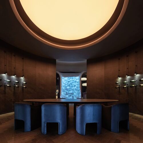Perched atop a sky-scraping hotel tower, the lofty room affords stunning views of the city's skyline, complemented by blue fabric sculptures suspended from the white ceiling. The owner, a Nanjing native living in Paris, opened the restaurant in 2021 to serve refined French cooking with a modern twist in the form of a concise à la carte menu, six-course tasting menu and T-bone steak set. Save room for the millefeuille with caramel and raspberry jam.