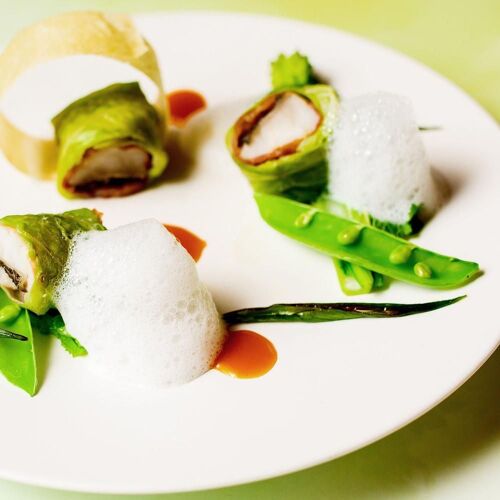 The elegant space was once a sake brewery founded in the 19th century, in the Meiji period. Enjoy French cuisine featuring Nara ingredients and various creative touches. Vegetables delivered from nearby farms are used in salads and soups. Also unique are the desserts made using sake lees and sweet sake. After the meal, a special Japanese tea, Yamatocha, is brewed, extending the magic to the last moment. Pairings with sake sourced directly from the brewery accentuate the cuisine.