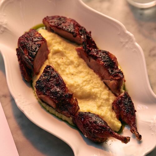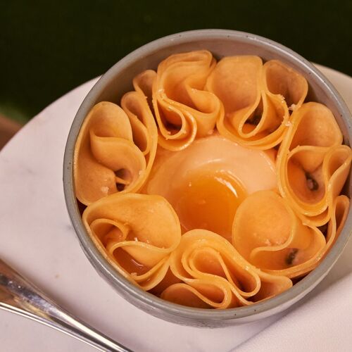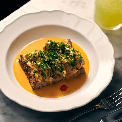 At first glance, it may seem like your typical neighborhood all-day café, but there’s more than meets the eye at Café Mado from Chef/owner Nico Russell. This Prospect Heights café bustles with a coffee shop up front and a skylit atrium with a small bar and dining room. It is here where they sell house-baked bread, breakfast sandwiches, elegant small plates, and handmade pasta by day before shifting to a more refined dinner service by night. Begin with pissaladière, a warm, round loaf topped with anchovies, caramelized red onions, and olive spread or kick things off with a seasonal small plate like summer melon with lime granita and habanada before tucking into a plate of pasta, like pici with pesto Genovese.