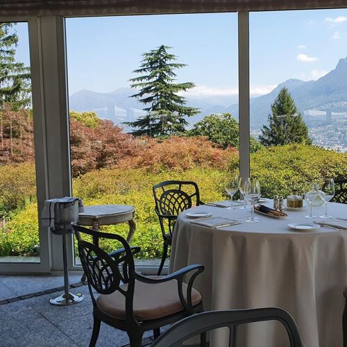 Situated in a panoramic and picturesque location outside the town centre, Principe Leopoldo is the gourmet restaurant of a classic-style hotel with an intimate ambience. Take a seat on the veranda with its stunning views of the lake and mountains or make yourself comfortable in the elegant dining room in winter. The cuisine here is based on solid traditional technique and is prepared from seasonal local and Mediterranean ingredients, with an equal balance of meat and fish dishes. The wine list has something for all tastes, including a selection of memorable vintages.