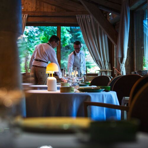 Father René and son Maxime shine the spotlight on their mountain terroir as they lovingly craft each ingredient, while seeking inspired new ways of preparing regional delicacies. Cheese, fish from the lake as well as herbs and berries that René picks daily are at the core of their “intelligent”, legible cuisine. An entirely family affair, mum, daughter, daughter- and son-in-law all play a role too, waiting on tables or in the back office. Finally, should you wish to spend the night, book yourself into the chalet next-door and snuggle up in the exquisitely chic alpine-styled rooms and suites.