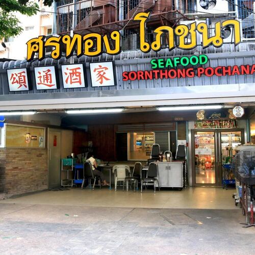 For quality seafood that won’t burn a hole in your pocket, look no further than Sornthong. Easily identified by the crowds dining beneath a large yellow sign in Thai and Chinese, this family-run shop has done a booming trade in prime fresh fish for more than 20 years. Ingredients are taken from tanks outside the restaurant, then cooked under the watchful eye of Mr. Chai – fried oysters with creamy eggs and a sweet-sour-spicy chilli sauce are a must-try. Away from the sea, keep an eye out for the well-marinated grilled pork satay.