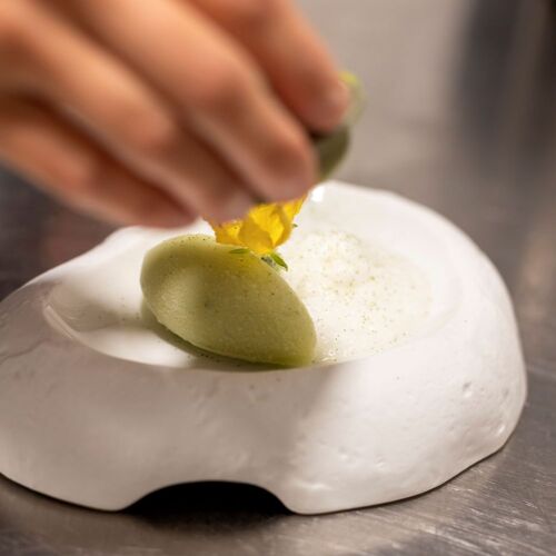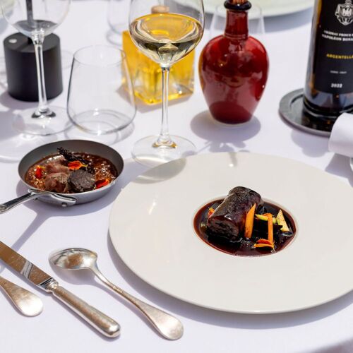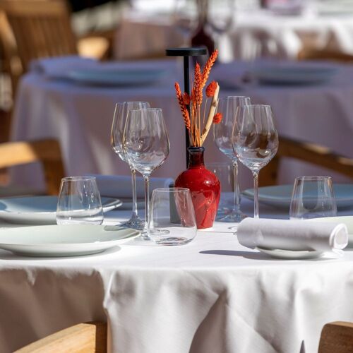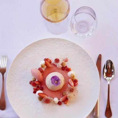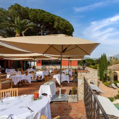 Just a few minutes from Calvi, this restaurant surrounded by pine forest and vineyards is housed in what used to be a Genoese aristocratic estate, with the mountains of the Bonifatu Cirque on the distant horizon. The terrace overlooking a garden that exudes the scents of the Mediterranean is the idyllic setting in which to savour a menu designed by MICHELIN-starred chef Stéphane Pitré and cooked by Romain Foubard; Valentin Mifort takes care of the desserts. The menu stars local ingredients such as red mullet from the village, Corsican porcu nustrale pork and local strawberries. Pretty villas and suites await you, as well as the spa and Le Bistrot dans l'Herbe.