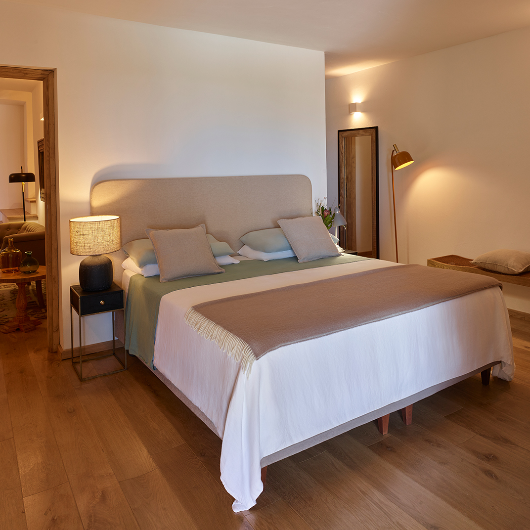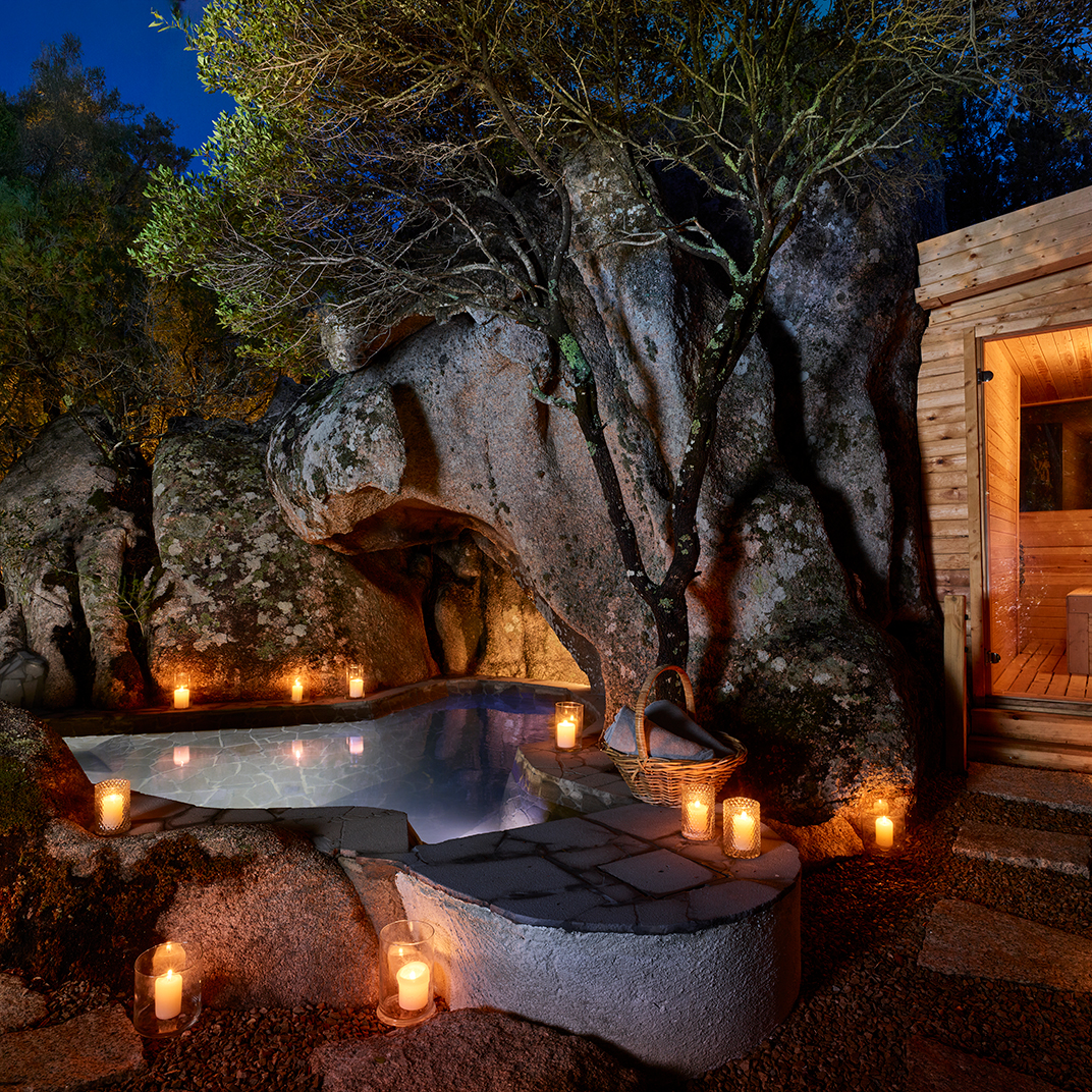 It’s an all-suite hotel, and each one comes with its own patio, garden, and pool, as well as indoor lounge space and all the comforts you’d expect from a modern country-house hotel. The interiors are contemporary in style, but take their cues from traditional Sardinian construction, lending them a richness of texture and a rustic-luxe personality.