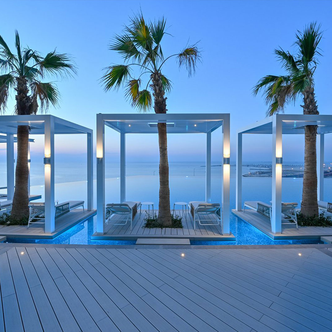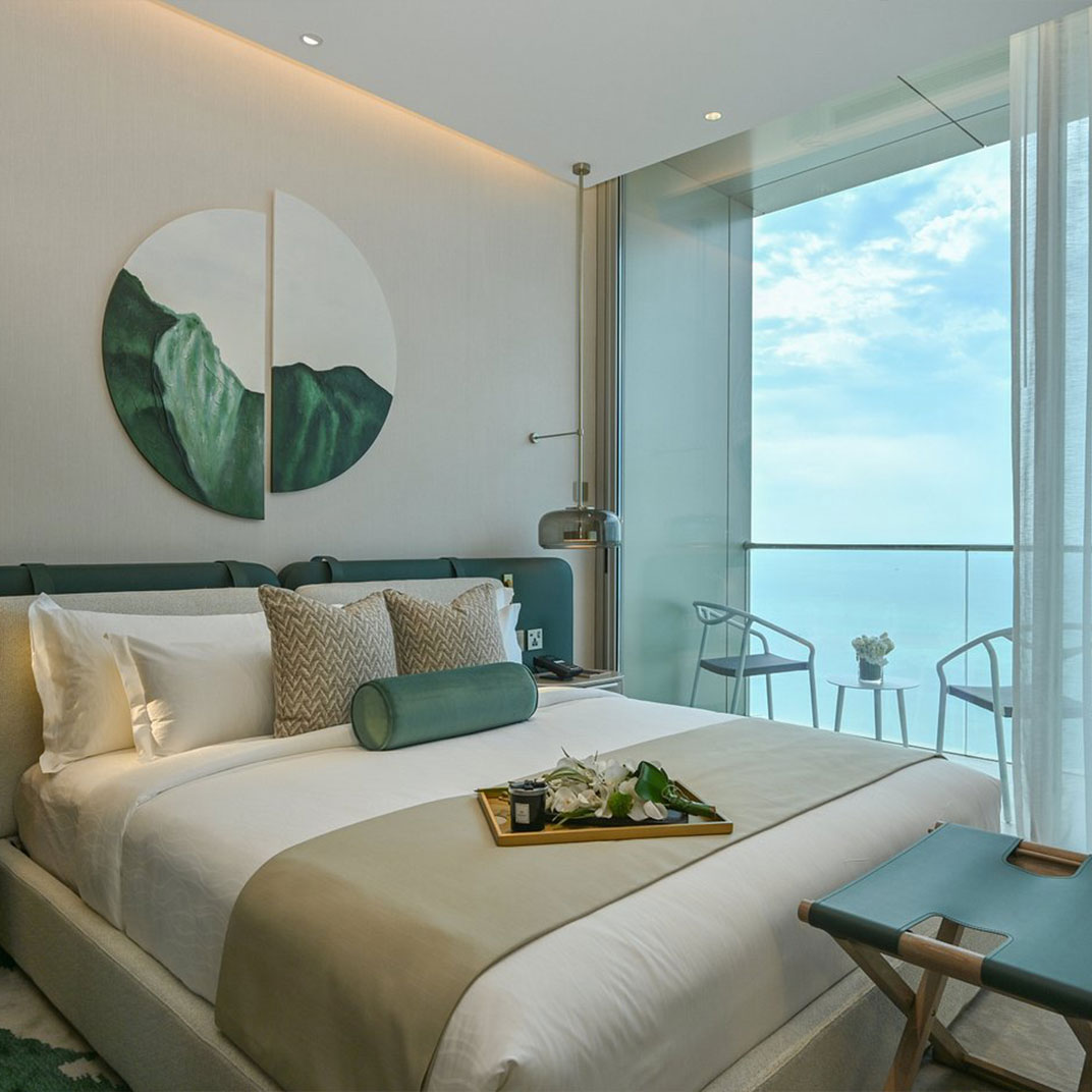 Bahrain Bay's high-rise shoreline isn't short on glass towers, but Onyx Rotana functions differently than most. Its 218 apartments are actual residences: full kitchens, living rooms, the kind of space that makes extended stays feel less like hotel limbo. Garnet's Mediterranean menu runs all day, while Thera operates poolside with Gulf views that justify the lazy afternoon. The dual gyms and co-working areas acknowledge that business travelers no longer fit one mold. It is practical luxury, minus the performative gestures.