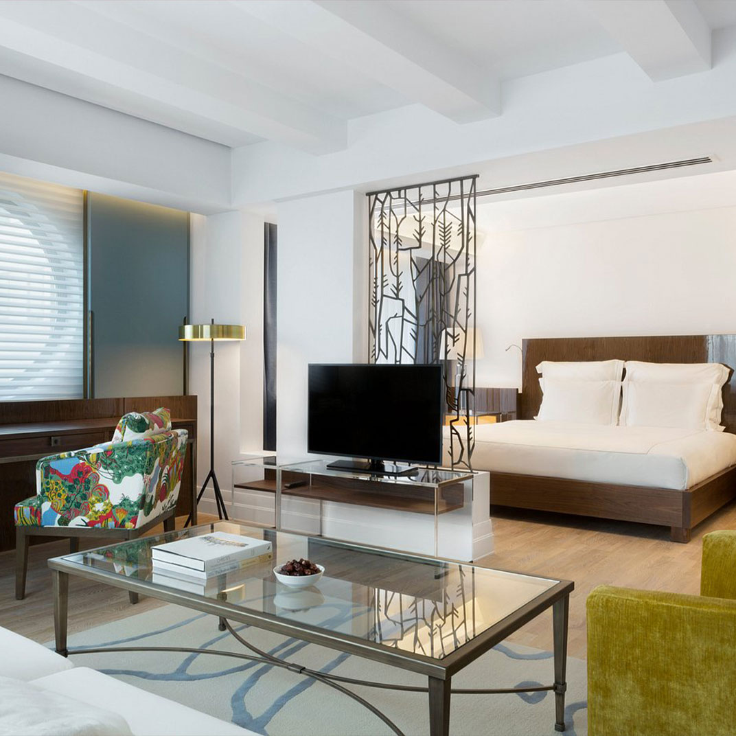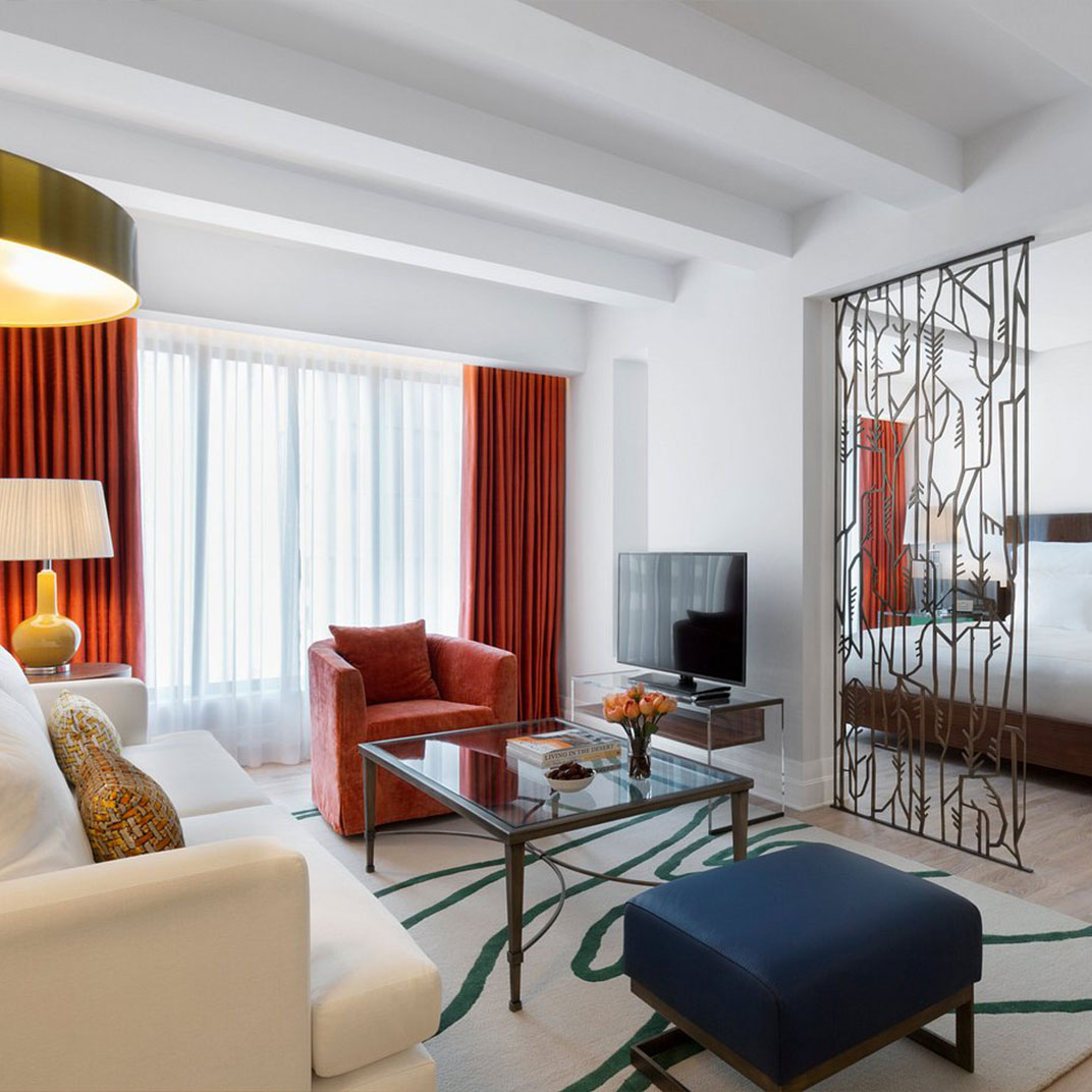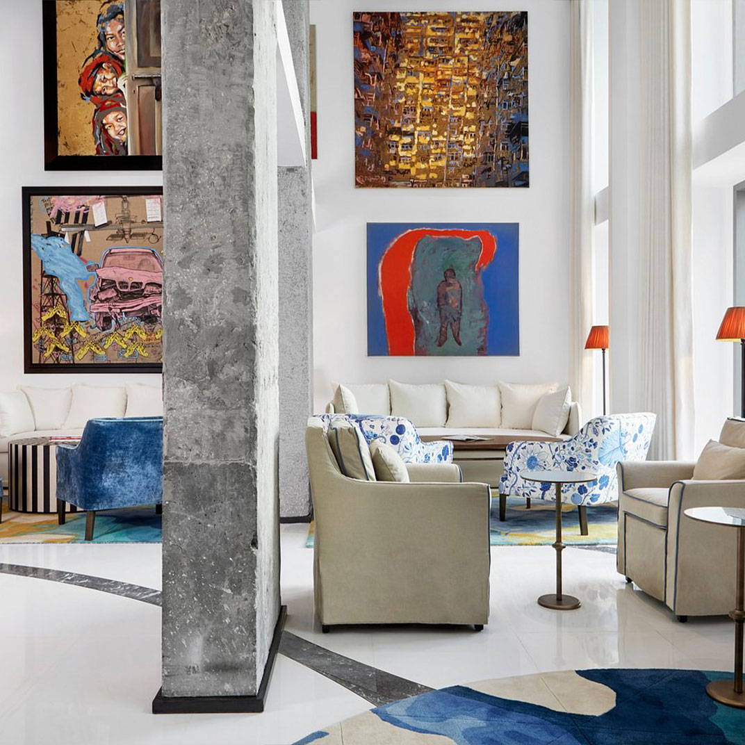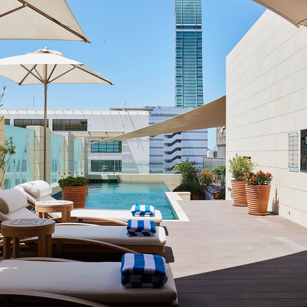 The Merchant House opened next to Bab Al Bahrain souq, in a part of downtown Manama that's seeing renewed attention. The 46-suite hotel carries a serious contemporary art collection, with Bahraini and Gulf artists sharing wall space with international names. Bright fabrics and saturated colors give the interiors more energy than most boutique properties manage. Each suite functions like a small apartment: kitchenette, separate living area, proper bedroom. The rooftop handles everything else: restaurant, bar, emerald-tiled pool, garden terrace. Small hotels either feel cramped or get it right. This one gets it right.