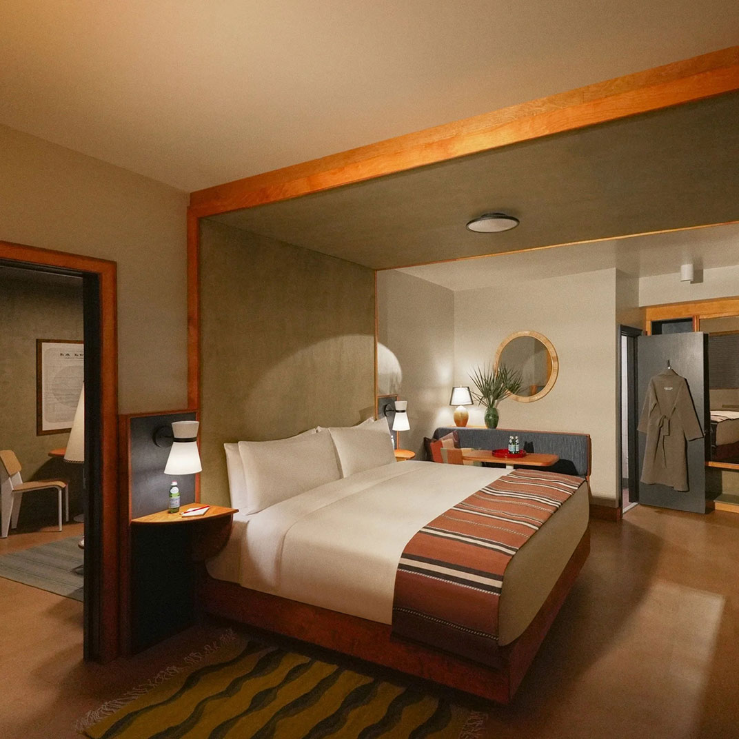 Once a classic Marigny guesthouse, The Maidstone has been reimagined by Studio Tre as a relaxed, design-forward stay with a distinctly American mid-century thread. Its 18 rooms layer cork floors, custom birch furniture, rattan mirrors, and textiles by Oaxacan artist Ismael Gutierrez Montano with comforts like Frette linens and in-room robes. Outside, a saltwater pool and tiled wall fountain anchor the garden courtyard. It is a small hotel, but a refreshing alternative to the city’s grander, more historic stays.