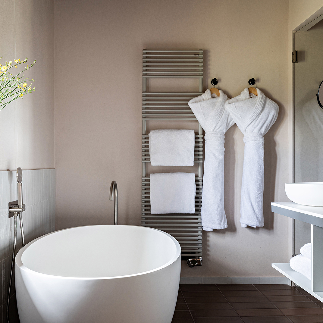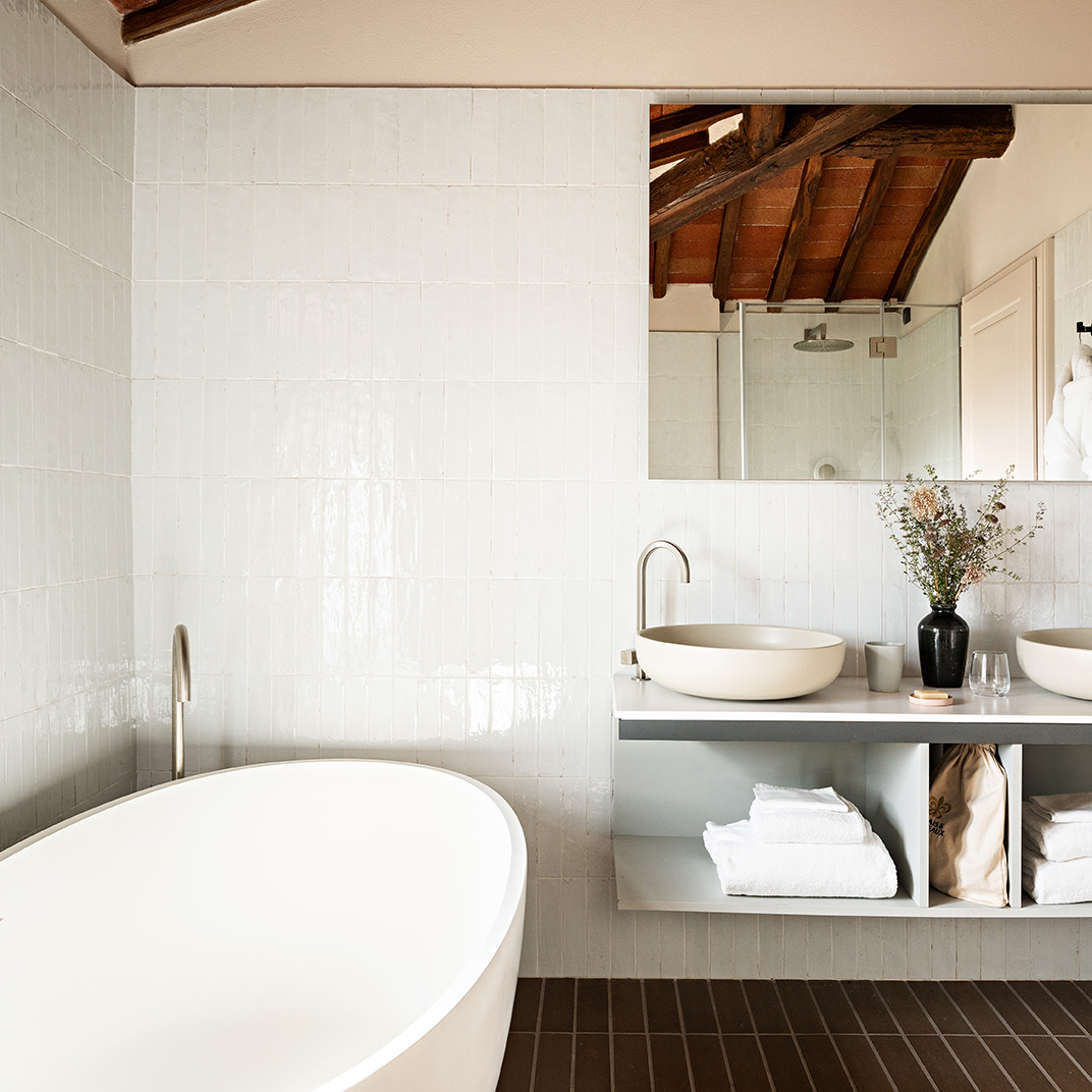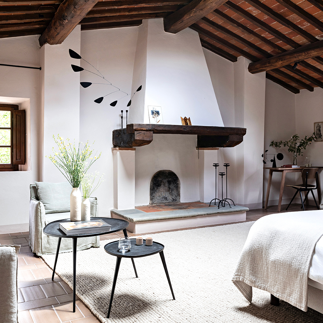 The 22 rooms and suites combine antique architecture and contemporary design, mixing rustic textures with 16th-century frescoes and a modern graphic sensibility. The accommodations are luxurious, but quietly so — not just soothingly simple in their visual style, but uncluttered and free of ostentatious ornament. Each unit is different, owing to the peculiarities of the historic floor plan, and many of the views are nothing short of extraordinary.