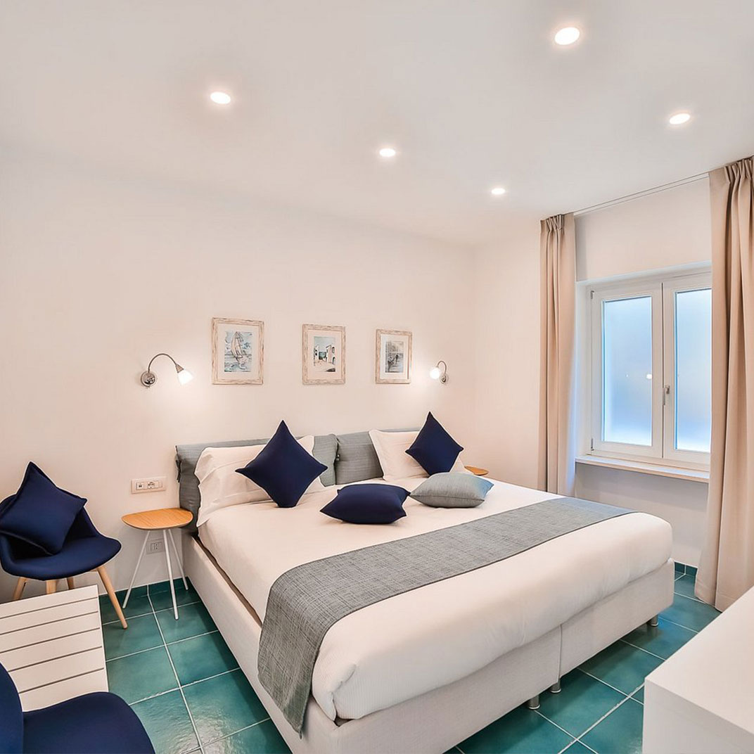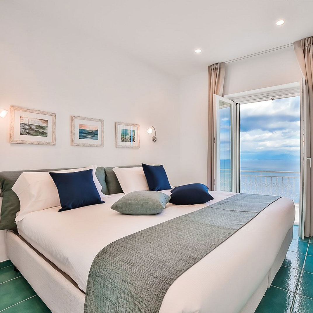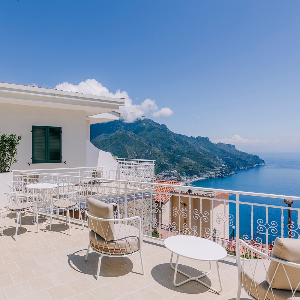 Perched above the Amalfi Coast, Casa Dolce Casa offers the serenity of Ravello with views that seem to drift straight into the sea. Its eight rooms are bright and inviting, dressed in handcrafted majolica tiles and warm Mediterranean colors. Some open onto private terraces made for long mornings or slow sunsets. A small wellness area adds to the sense of ease, while the solarium terrace brings together guests over the coast’s endless blue. Intimate, graceful, and unmistakably Ravello.