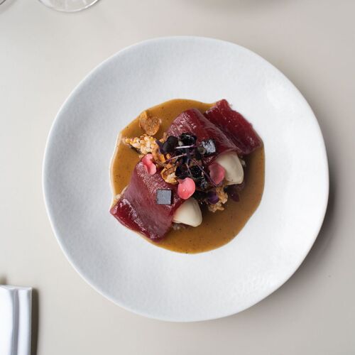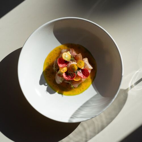 Cenk Debensason has travelled extensively over the years, and this has shaped his personality as a chef. In brief, he grew up in Istanbul, trained in France, and matured as a chef in the United States. You also get a sense of his journey in his dishes. His spicy twist on a vol-au-vent, featuring al dente green asparagus and a lively gribiche sauce, showcases his understanding of French cooking. The chef seamlessly blends classic techniques with Asian flavours, for example in his perfectly seared sea bass, which he elevates with the intense sweet and sour complexity of a Thai sauce. The versatility of this cuisine will keep you on your toes throughout the entire meal. The vintage feel of this stylish 1960s villa is a perfect match for Cenk Debensason's personality. Be sure to visit the Listening Room on the upper floor before or after your meal to enjoy a delicious drink and the chef's carefully curated playlist – sometimes DJs also play. Alternatively, explore Ritmo, an atmospheric space in the same building where you can choose from a small mezze menu. A visit to Arkestra is an experience you won't forget in a hurry.