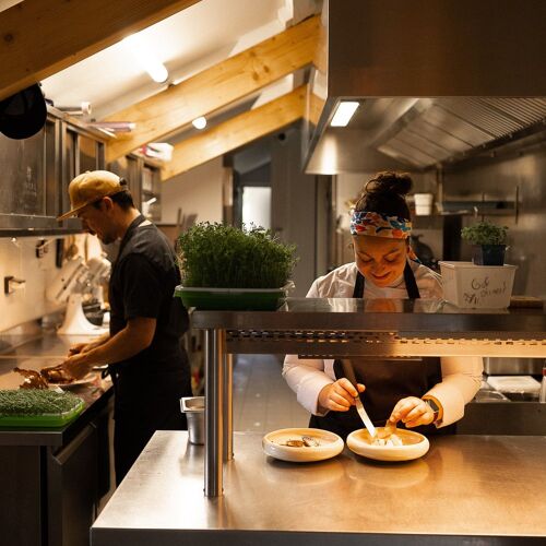 Antoine and Coralie met in Jean Cousseau's two-Michelin-starred restaurant (Relais de la Poste in Magescq) after gaining solid experience in France and Spain. This former café-restaurant has been given a facelift that subtly blends vintage and modern features (waxed concrete floors paired with exposed beams). As for the food, this pair of pros focuses on flavour, often drawing on the Iberian pantry to put a spin on traditional dishes: calf's head croquette; leeks in vinaigrette; sautéed sweetbreads; grilled octopus etc. Two terraces: one out front and one in the courtyard, away from the street.
