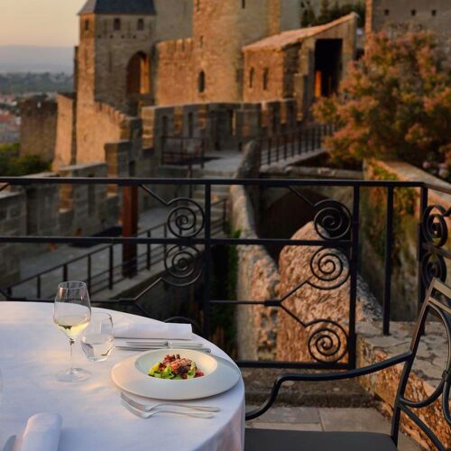 Set deep in historic Carcassonne, the Hôtel de la Cité is a superb example of neo-Gothic architecture, built in 1909 on the site of the former episcopal palace, whose magnificent gardens abut the ramparts. Inside, stained-glass windows, coats of arms and wainscoting lend it an ambience worthy of 19C French architect Viollet-le-Duc. Based on top quality ingredients, notably Mediterranean fish and seafood, as well as game and mushrooms in autumn, the menu champions the region’s terroir in dishes that add a new spin to classical recipes.