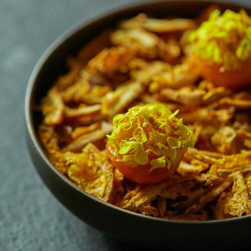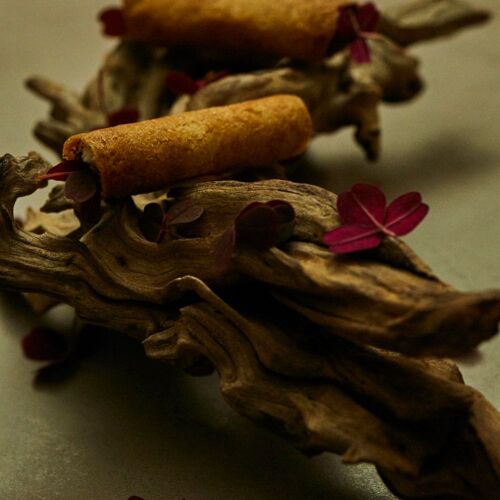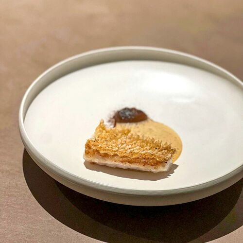 The concept is ‘conversations between ingredients’. Pairings of complementary ingredients include Pacific saury with tomatoes, potatoes with cheese and duck with figs. The signature dish of caviar, squid and aubergine brings out a unique flavour profile through the contrast of salt and sweet. The numbers of ingredients on each plate are kept to a minimum, so patrons retain a clear impression of what they ate.