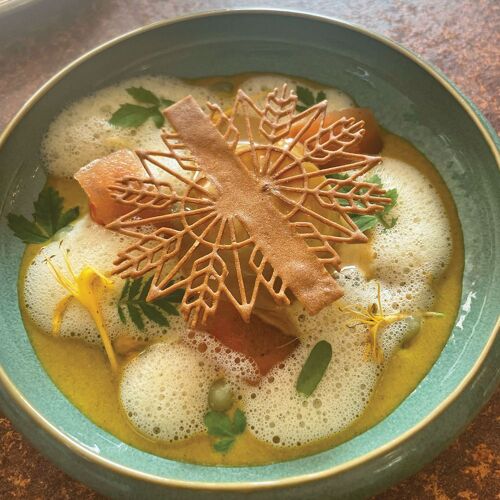 L'Alexandrin combines originality with generosity, serving dishes made using fine, locally sourced produce. Each menu (vegetarian, revisited Lyon classics or pure creation) proposes a different take on the art of fine dining in an exclusive atmosphere. One novelty is the table d'hôte with four guests seated in the kitchen at the heart of the action!