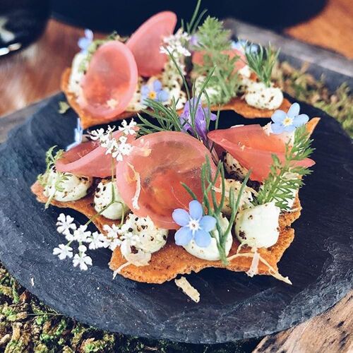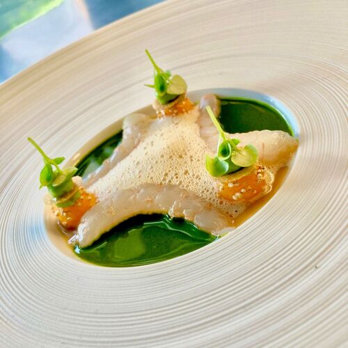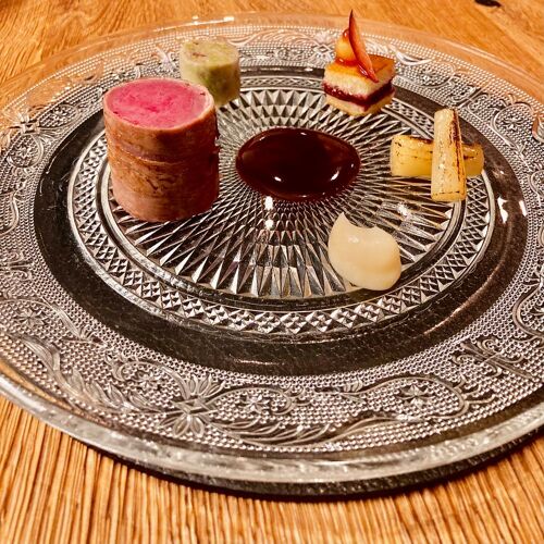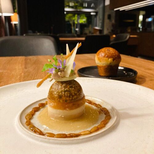 It's quite something to see the two-man team of Janice and Heiko Lacher at work in their restaurant! In the open kitchen, chef-patron Heiko expertly puts together his ambitious, creative set menu "Mit Leib und Seele" ("With Heart and Soul"), which comprises seven courses as well as aperitifs, bread, and petits fours – also available in a shortened form. Their motto "Weltoffen – Naturbezogen" ("Open to the world – rooted in nature") is reflected in dishes such as saddle of local grass-fed lamb, roasted until perfectly pink and served with a hot and spicy chipotle lamb jus, smooth sheep's milk polenta, and an elegant little scoop of chopped vintage sardine with preserved lemon and garlic. Tip: Oysters and caviar are available as optional additions to the set menu. Your charming and wonderfully organised hostess attends to guests while also assisting her husband putting the final touches on the dishes. All to be enjoyed in a sleek, modern space that feels appealingly airy thanks to the floor-to-ceiling windows. The number of seats is limited, making for an appealingly private atmosphere. N.B. The set menu begins at the same time for all guests.