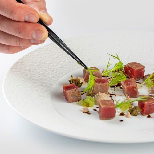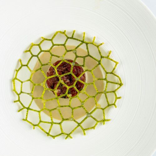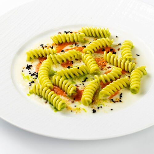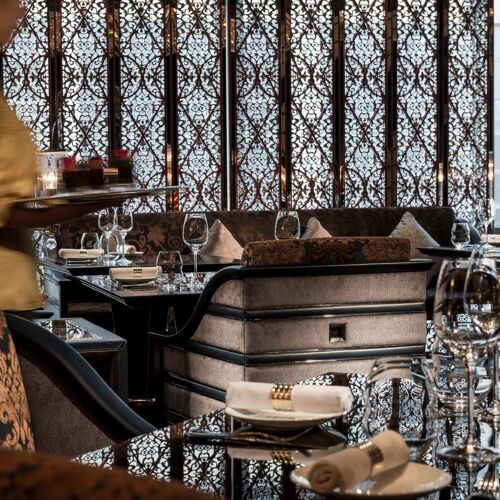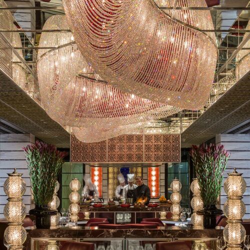 In the lavish, richly textured space, strings of glass beads draped from the mirrored ceiling form a dazzling sculpture. The Milanese chef pays tribute to the culinary traditions of Northern Italy, updating them with a sense for playful drama, meticulous plating and modern techniques. Reimagined classics of Piedmont and Lombardy such as vitello tonnato, tagliolini con ragù di agnello, and agnolotti del plin are all immensely satisfying.