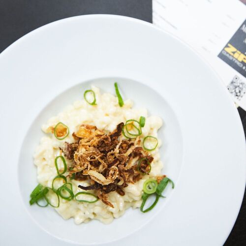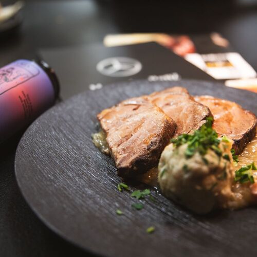 Don’t be fooled by the rather unassuming exterior, as once inside you are transported to a totally different world... a world of beer! Sit in one of the booths and enjoy a premium beer (some of which are brewed on site), while studying the proudly local, meat-driven menu. The homemade sausages are outstanding, as is the Mangalitsa, and there’s a myriad of different steaks – all of which arrive in generous portions. Service is endearing, and comfortable apartments complete the picture.