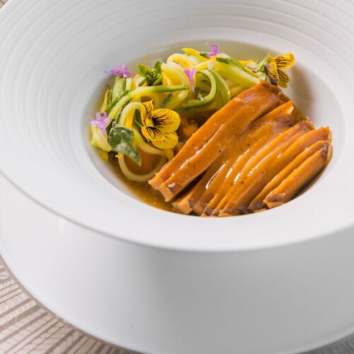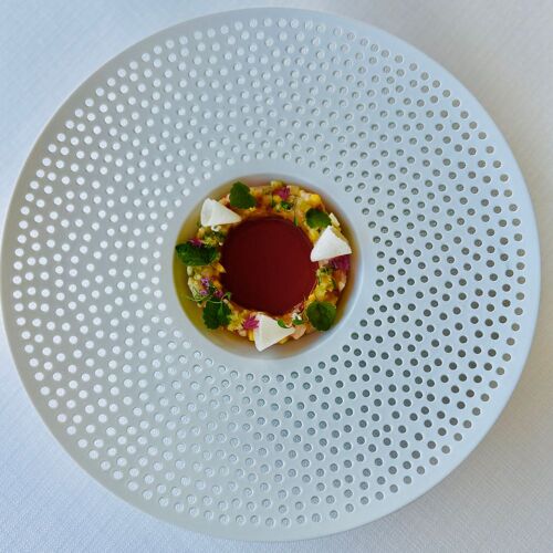 "We have a comprehensive program of local sourcing; our Garde Manger program is supported by our vegetable garden and the honey for the restaurant is produced in house from our bees; 90% of the seafood is local and sustainably sourced."