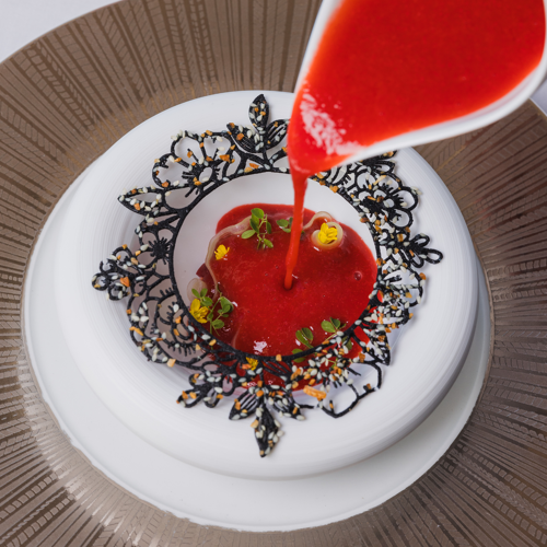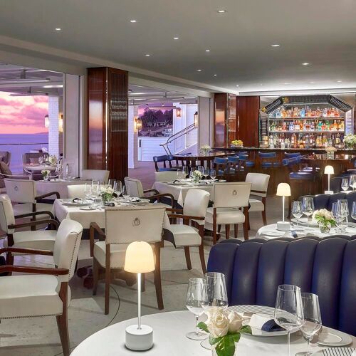 Located within the posh Rosewood Miramar Beach and fronting the Pacific Ocean, Caruso's has an enviable location. The dining room is beautifully set with leather booths, linen-robed tables, and white chairs, but make no mistake: Chef Massimo Falsini's seasonally driven, seafood-forward, and Italian-leaning prix-fixe takes center stage. From Santa Barbara uni sourced from a local diver to produce grown in the restaurant's onsite garden, there is a strong commitment to regional products, evidenced in dishes like pasta with diced abalone and halved Santa Barbara spot prawns topped with uni in a rich and creamy ramp sauce. Desserts are especially enticing, as in the "S like Strawberry" with a ring of pasta frolla filled with rhubarb sauce, mascarpone, and perfectly ripe strawberries.