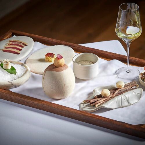 Alongside its unquestionably high levels of gastronomy, Refectorio enjoys a spectacular setting in a 12C monastery surrounded by nature, wine cellars and vineyards, and is renowned for its spectacular and pinpoint service, which includes an aperitif in “La Cueva” (home to the bodega’s private collection). Reus-born chef Marc Segarra offers guests a choice of menus (Terroir, Origin and Legacy) and a highly creative culinary experience with wine-pairing options that provide a perfect opportunity to taste some superb vintages. Seasonal produce from the farm here and ingredients sourced from small-scale local producers also add to the appeal (recommended dishes include the delicious “14C escabeche”). Another interesting feature is the use of lees (the natural sediment produced during the wine fermentation process) in both the monkfish with emulsion dish and the butter.
