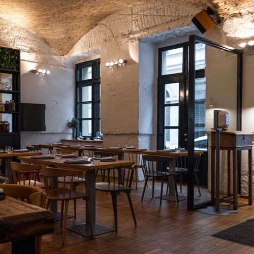 Rustic charm abounds at this laid-back restaurant, from the décor to the vaulted brick ceiling. Seasonality is key here and Chef János takes time to visit his small, artisan suppliers personally. His travels inform the interesting set menu (go for the longer version), with vegetables treated as reverently as meat and fish, and curing, pickling and ageing all playing their part. Knowledgably prepared, consummately seasoned dishes have a delicate touch and could include grey catfish with buckwheat or duck with celery and pine. The unobtrusive, expertly paced service is spot-on too.