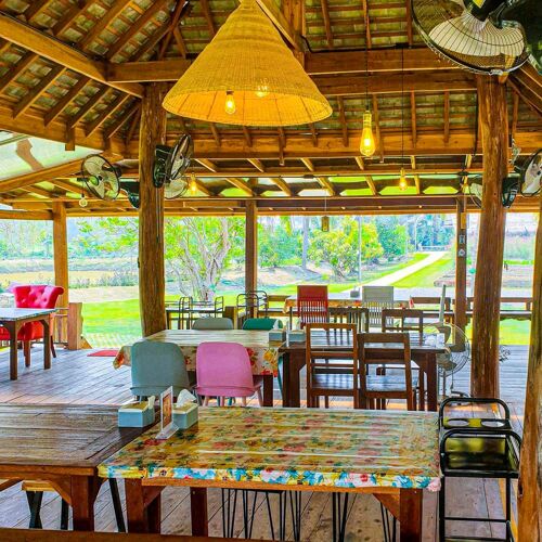 In a serene location in San Sai, surrounded by nature, this Northern Thai spot serves traditional cuisine made with vegetables, fruit and herbs grown in their garden. Dishes such as nam prik num with fermented fish, kua kae with frog or gang pak waan with ant eggs prove to be rich and bold. The deep flavours are distinctly local, reflecting both the region and the care that goes into each plate. A restaurant that connects you to the land with every bite.